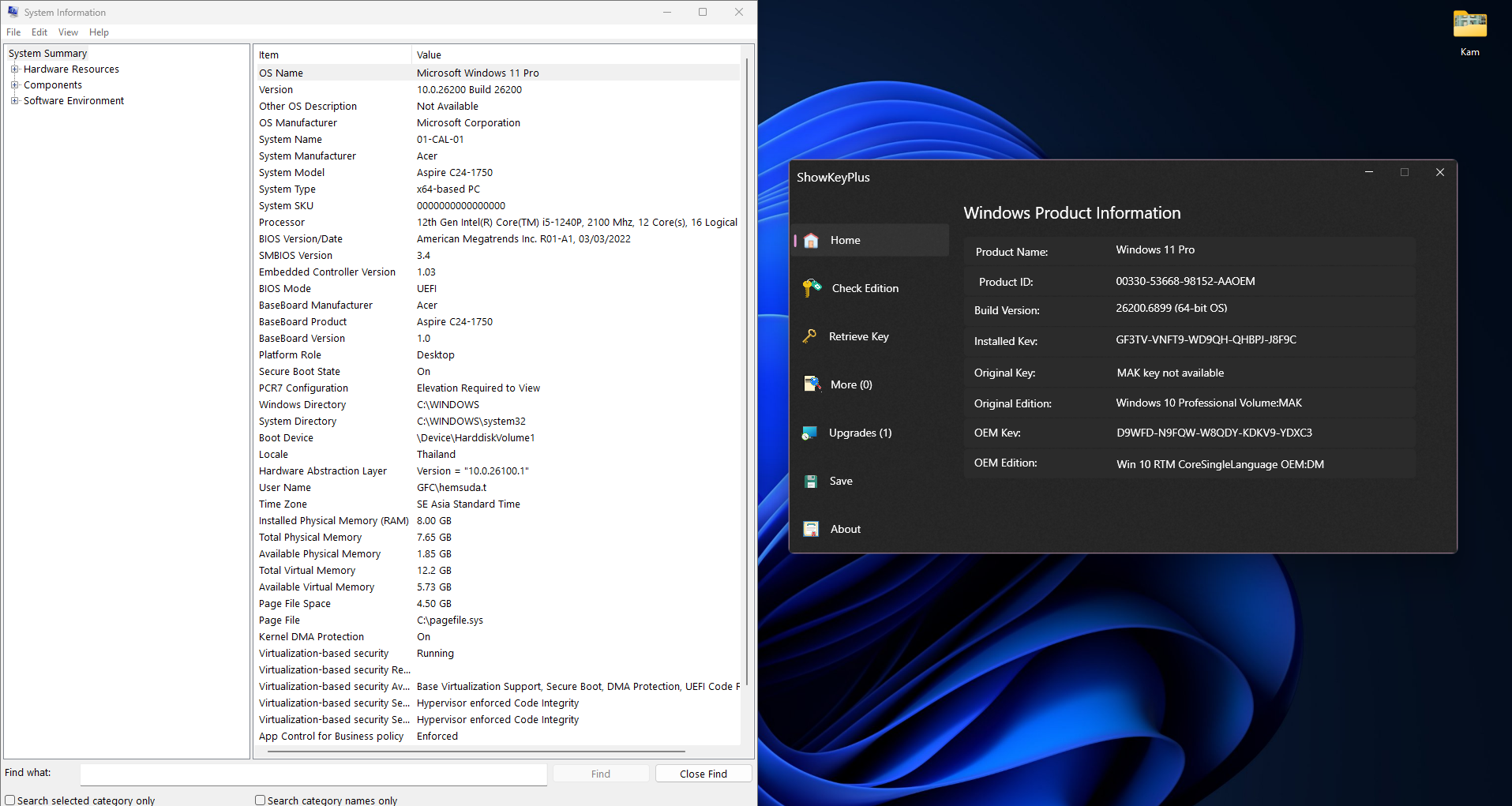 | CPU | 12th Gen Intel(R) Core(TM) i5-1240P |